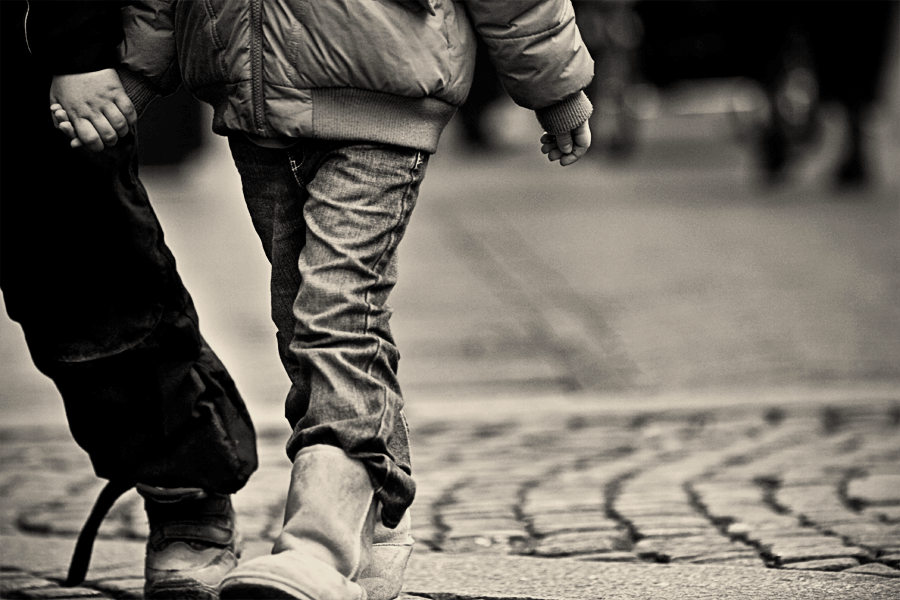 Hai đứa cầm tay đi