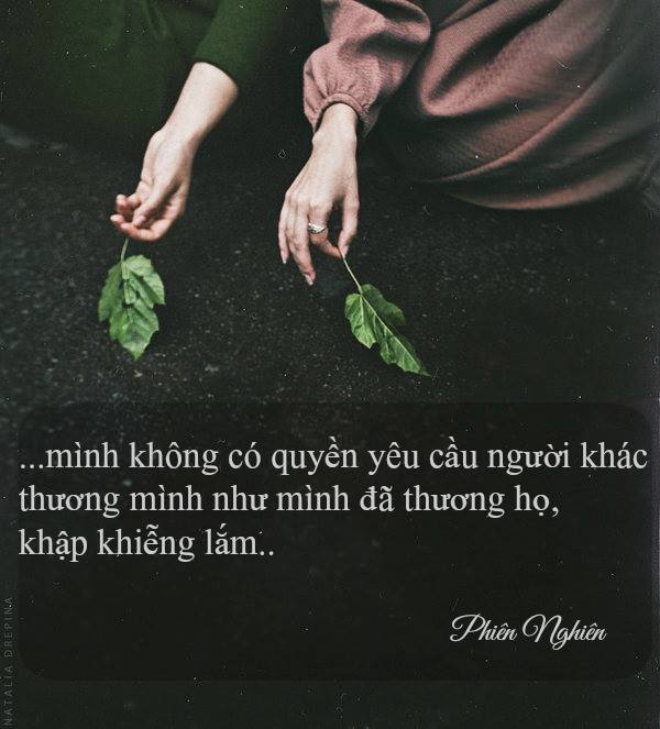 Trao và nhận thiệt ra cũng chỉ là tương đối. Dội ngược vào tim mình lúc này là đầy ắp giá trị tinh thần, là bài học “đừng bao giờ dùng bộ óc của mình để nghĩ dùm người khác”, là đừng ngụy biện và đổ lỗi cho thời gian. Hơn bao giờ hết, những tình bạn đứng riêng ra từng góc, hoặc nhìn mình say đắm, hoặc ngơ ngác, hoặc hoang mang, hoặc hân hoan… Mình không là Phật để thương yêu hết thảy, nhưng đủ để biết ai là người thương yêu, mình không có quyền yêu cầu người khác thương mình như mình đã thương họ, khập khiễng lắm..